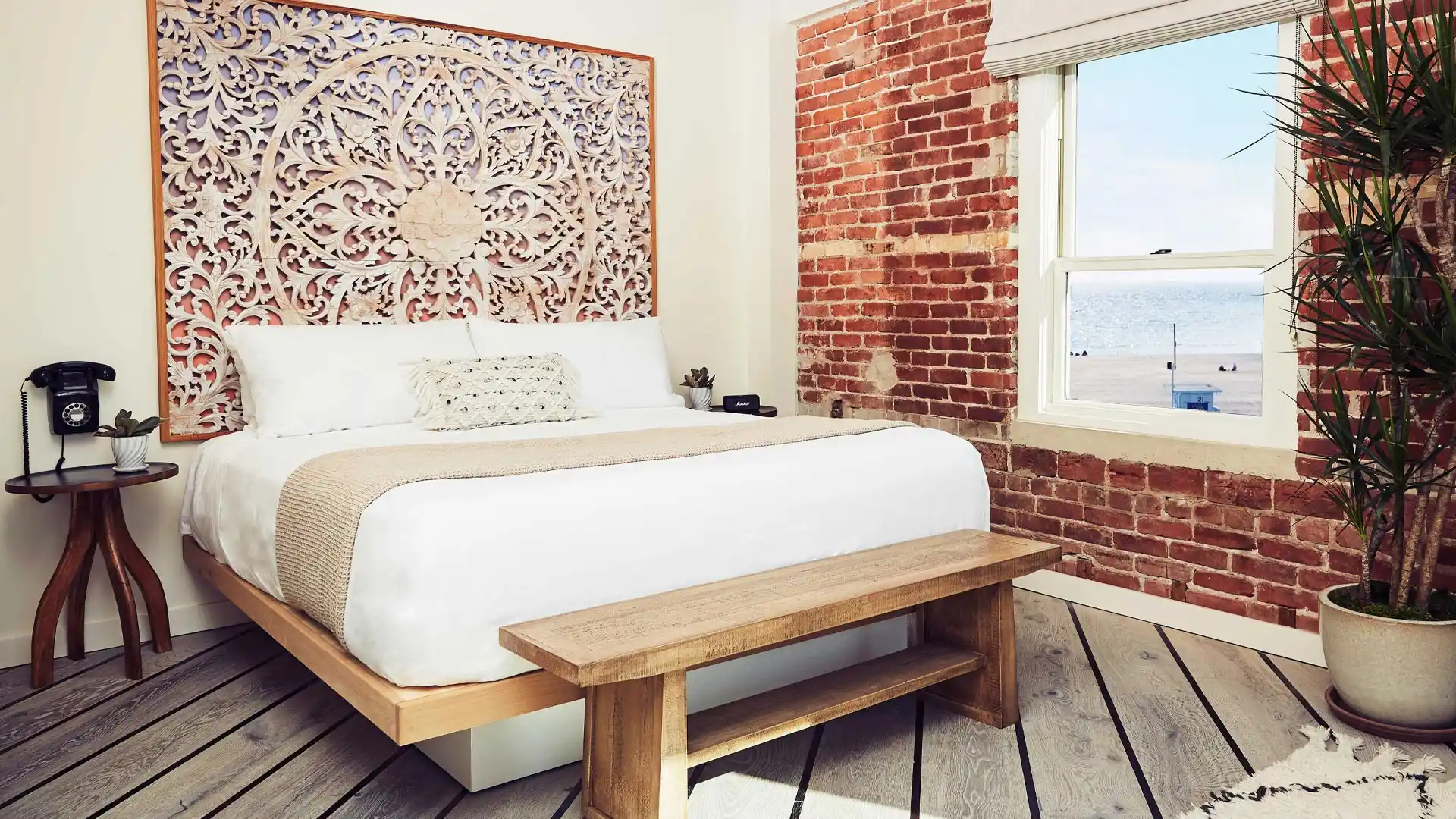 “Venice Beach isn’t just geographically on the fringes of the city of Los Angeles, it’s a stylistic outlier as well, known for its bohemian, creative edge and its intensely independent atmosphere. The century-old Waldorf Building is steeped in SoCal history; former residents include Charlie Chaplin and the legendary Z-Boys skateboard team (not at the same time). Today it’s been put to new use as Venice V Hotel, a modern boutique-style property that opens directly onto the famous boardwalk.